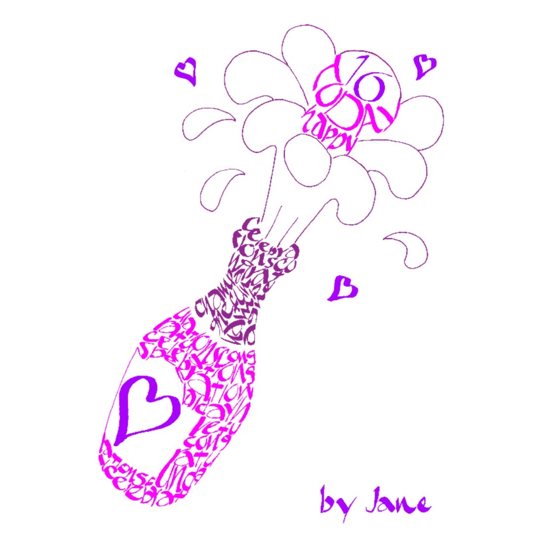 Til damerne. En unik, håndlavet Fest Flaske-kort, der kan leveres med en række forskellige aldre. Designet med kalligrafi i ord og sætninger, som fejrer denne særlige dag. Glimmer og diamantes gøre dette smukke kort gnistre.