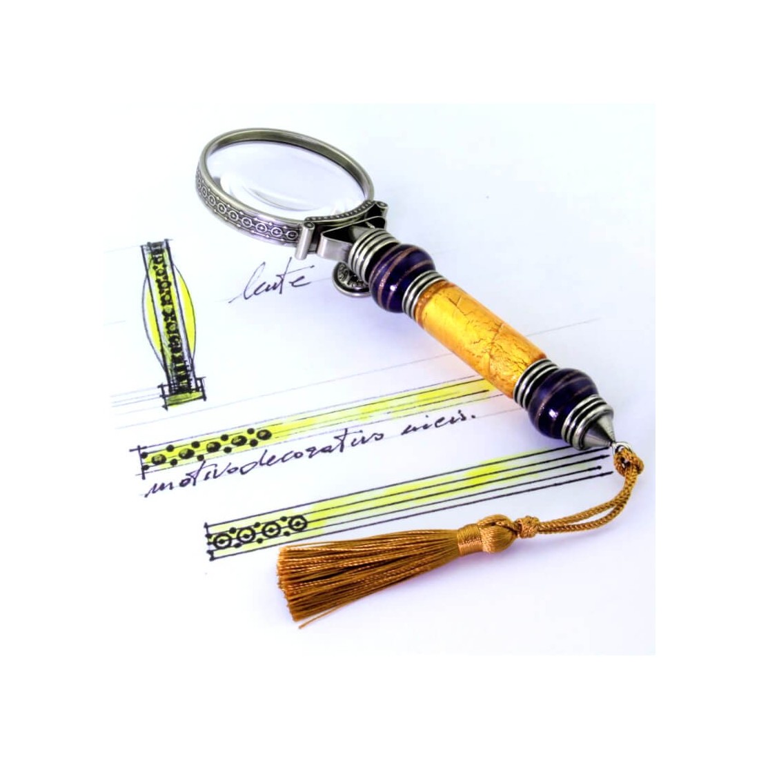 Forstørrelsesglas med ædle 24-karat bladguld smeltet sammen i Murano-glas for den mest elegante gave.