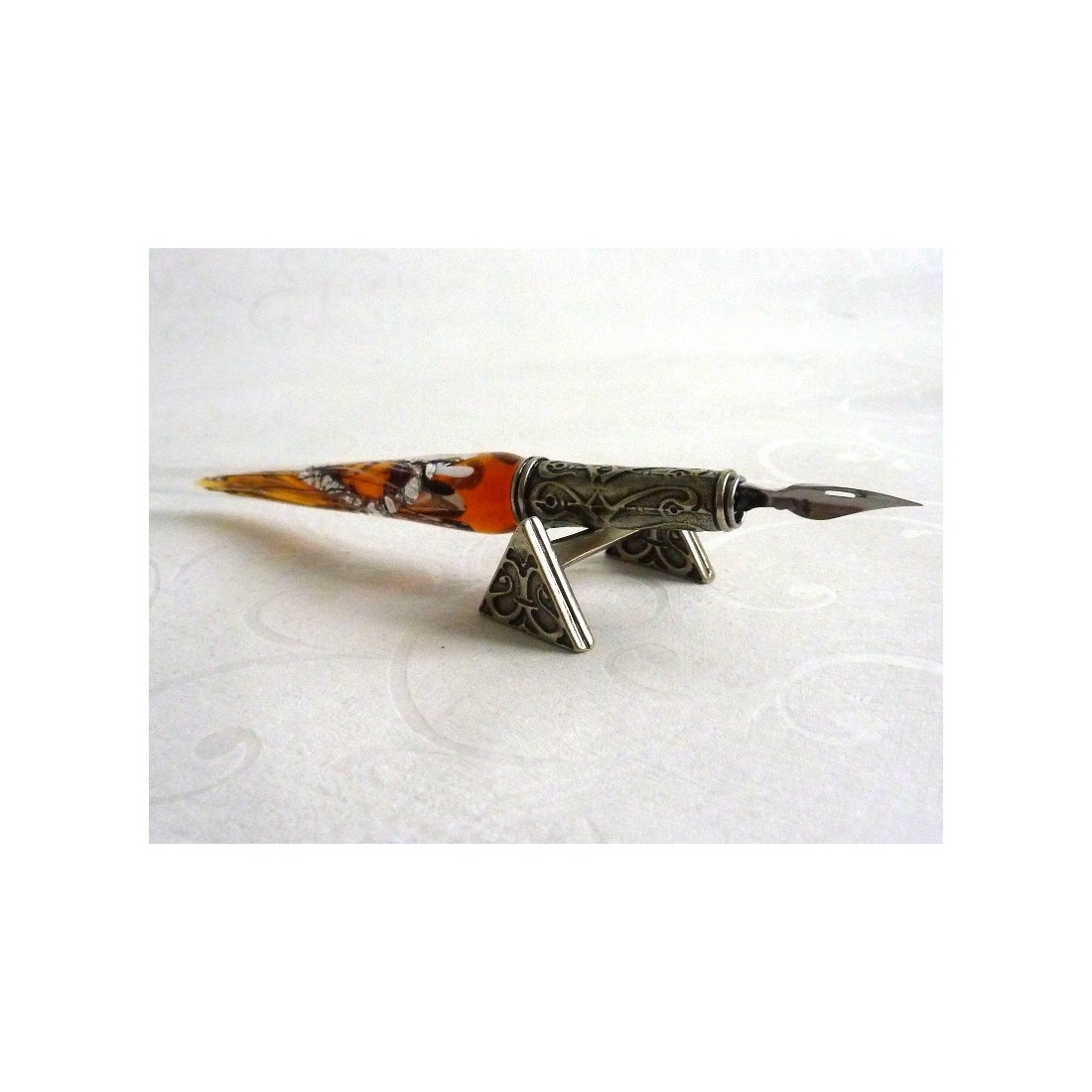 En behagelig seng til din elskede pen, lavet i fint arbejdede nickle sølv. En lille perle af design og håndværk, denne pen resten er unik.