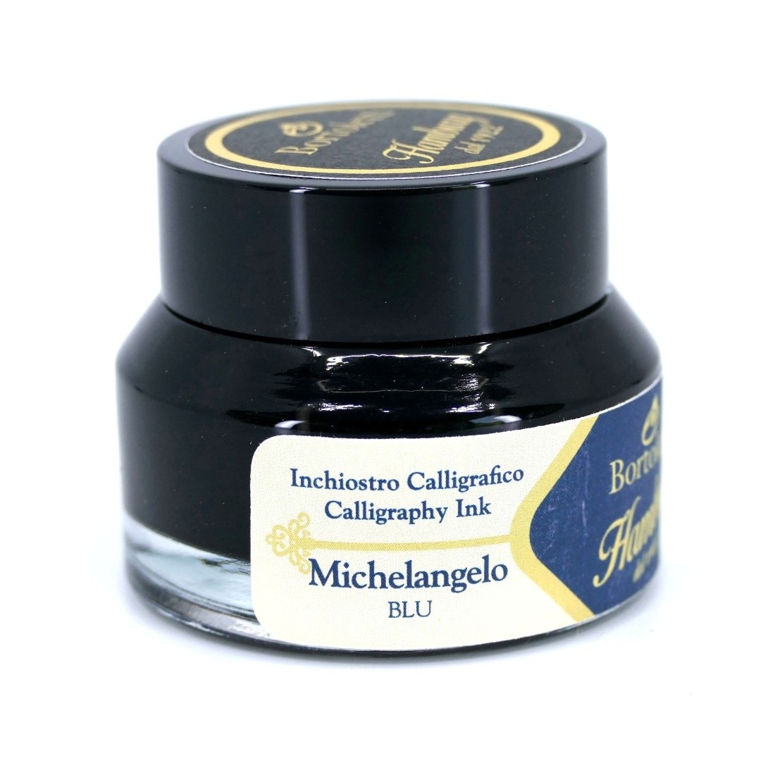En flaske blå italiensk kalligrafi blæk (30 ml), leveret af Bortoletti. En væsentlig skygge med et strejf af gråt, der giver en delikat elegance. Her er vores blå dedikeret til Michelangelo.