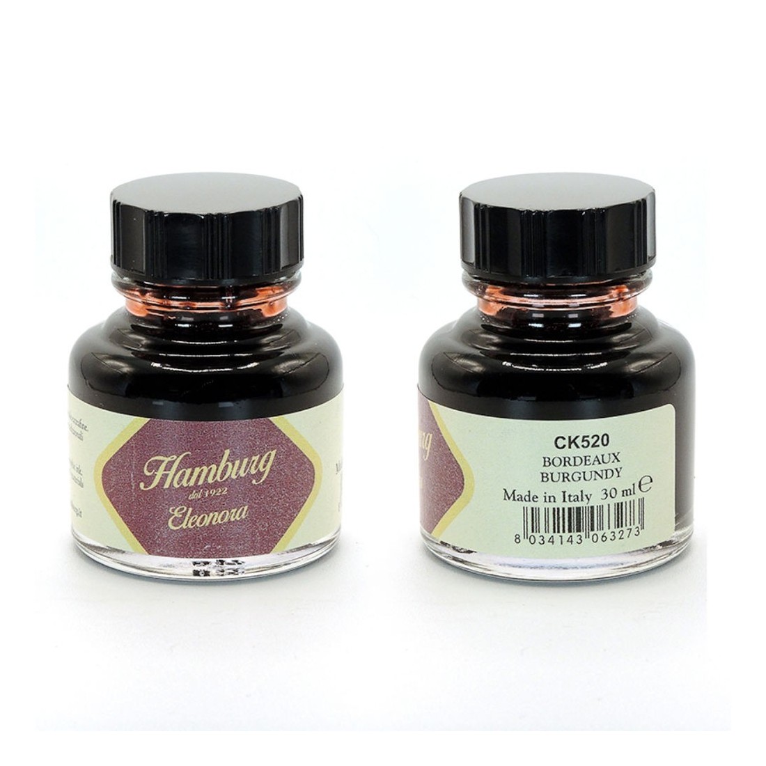 Hamborgs "Eleonora" Bordeaux-farvede kalligrafi-blæk leveres i en 30 ml flaske og er et førsteklasses håndværksblæk designet til kalligrafi-entusiaster og kunstnere, der sætter pris på kunsten at skrive. Denne udsøgte blæk er kendt for sin rige bordeaux-nuance, der minder om dyb rødvin, og dens exceptionelle kvalitet, der fremhæver skønheden i ethvert manuskript eller kunstværk, det pryder.