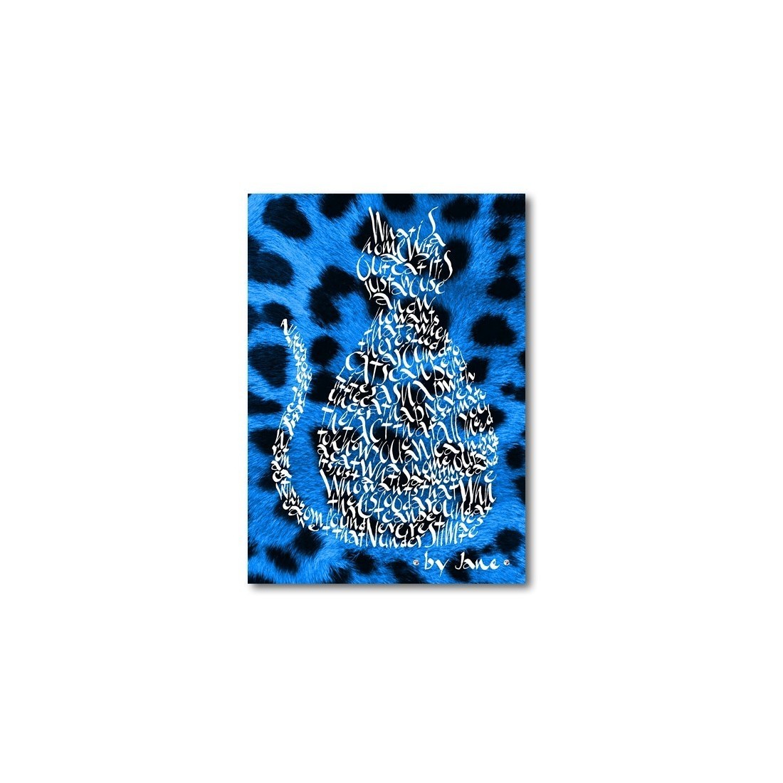 Vores unikke kat design. En håndlavet kort på en blå leoparden hud baggrund. Designet ved hjælp kalligrafi i ord, sætninger og citater alt om vores fantastiske lodne katte venner.