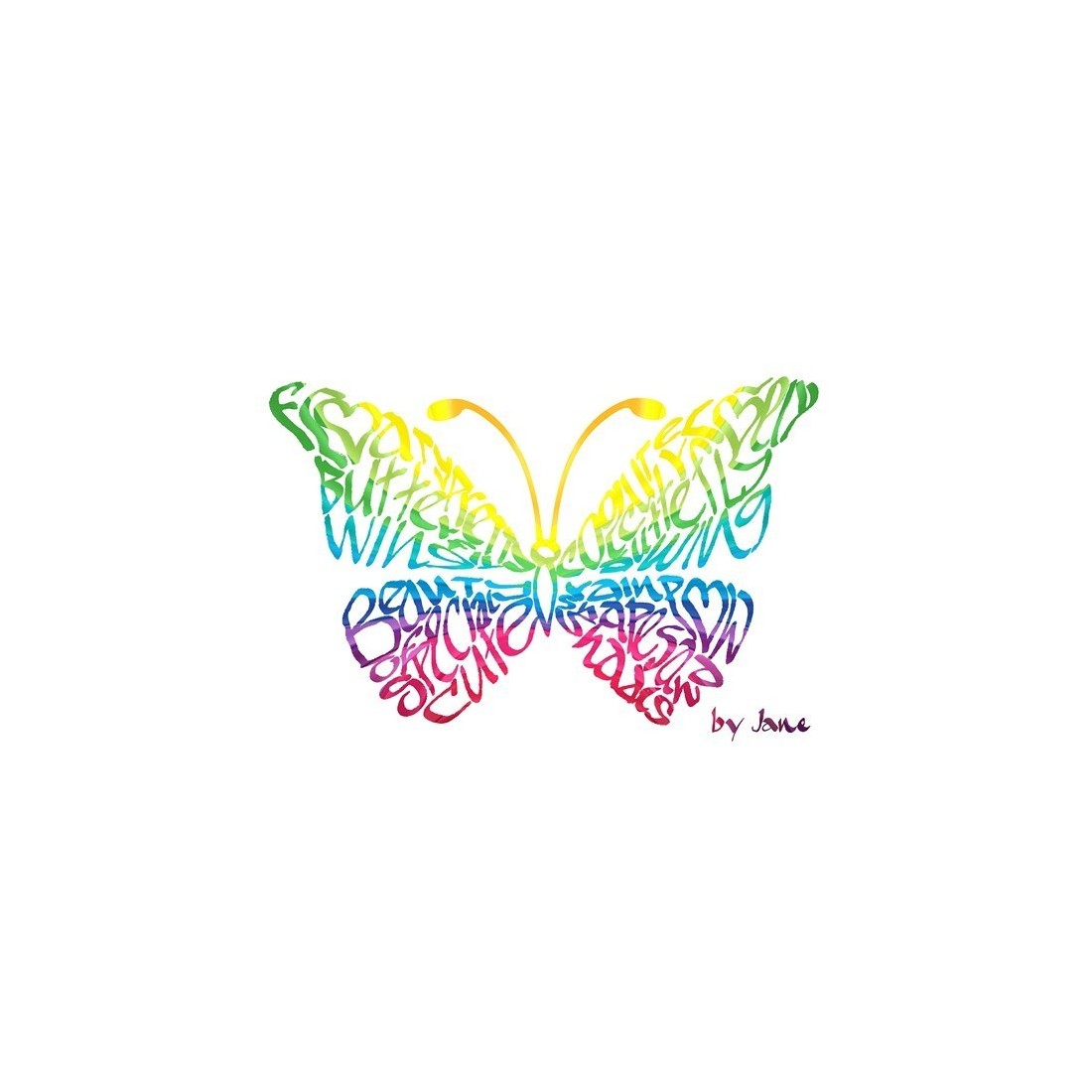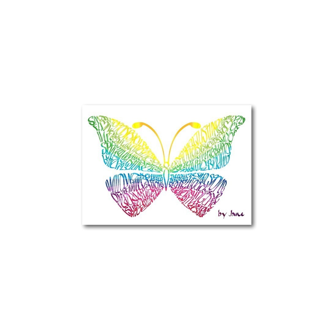 En lys og smuk regnbue farvet sommerfugl, kalligrafisk lykønskningskort. Diamantes fremhæve de vingespidser og hoved, mens kroppen og antennen har begge glitter anvendt til at bringe en særlig gnist. Denne vidunderlige sommerfugl design afspejler den sarte skønhed af vores sommerhave bevingede venner.