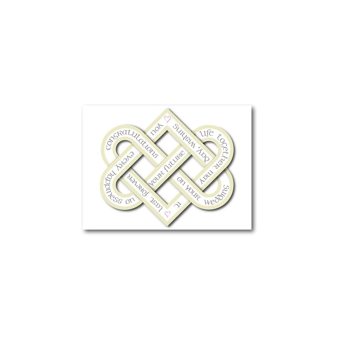 Gratulieren dem glücklichen Paar am Tag ihrer Hochzeit mit diesem wirklich einzigartigen Entwurf. Eine wunderbare Celtic ewige Liebe Knoten mit zwei Herzen verflochten schön und enthält einen schönen Skript geprägt. Eine tolle pearlised Karte, die wunderbar glitzert.