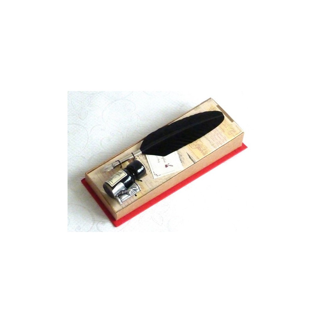 Dieses wunderbare Kalligraphie-Stiftset mit Gänsefedern ist ein ideales Geschenk für diejenigen, die keine größeren Federkiele möchten. Es wird komplett mit einer Flasche schwarzer Tinte geliefert, die einen Zinnfederhalter enthält. Hergestellt in Italien von La Kaligrafica.