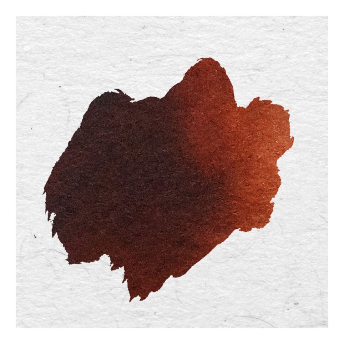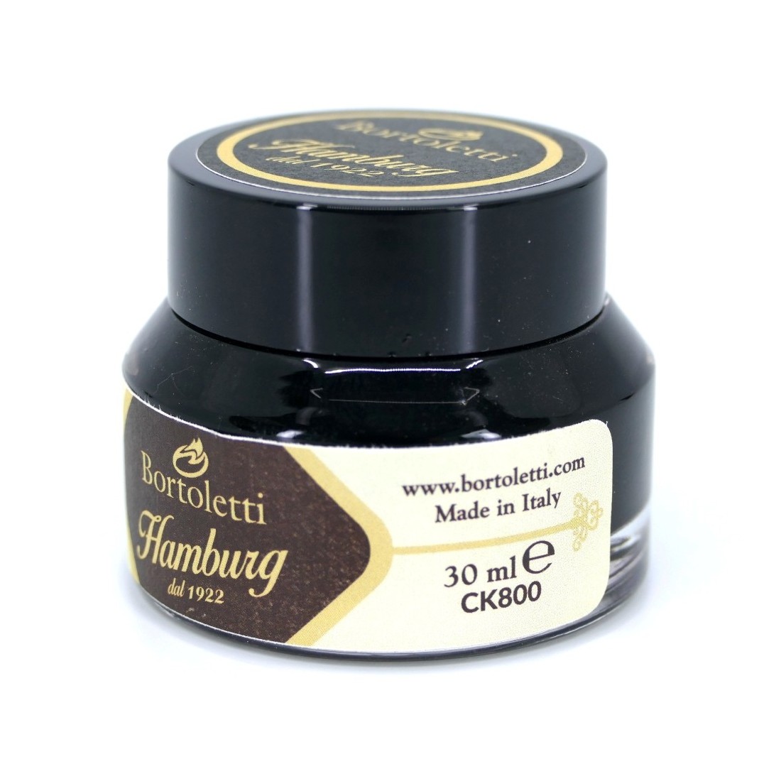 Eine Flasche mit brauner italienischer Kalligraphietinte von guter Qualität (30 ml). Geliefert von Bortoletti. Tiefes Braun für diese Tinte, die der rastlosen Seele des großen Caravaggio und seinen Werken mit dunklen Nuancen gewidmet ist, die durch fast heftige Lichtpunkte verstärkt werden.
