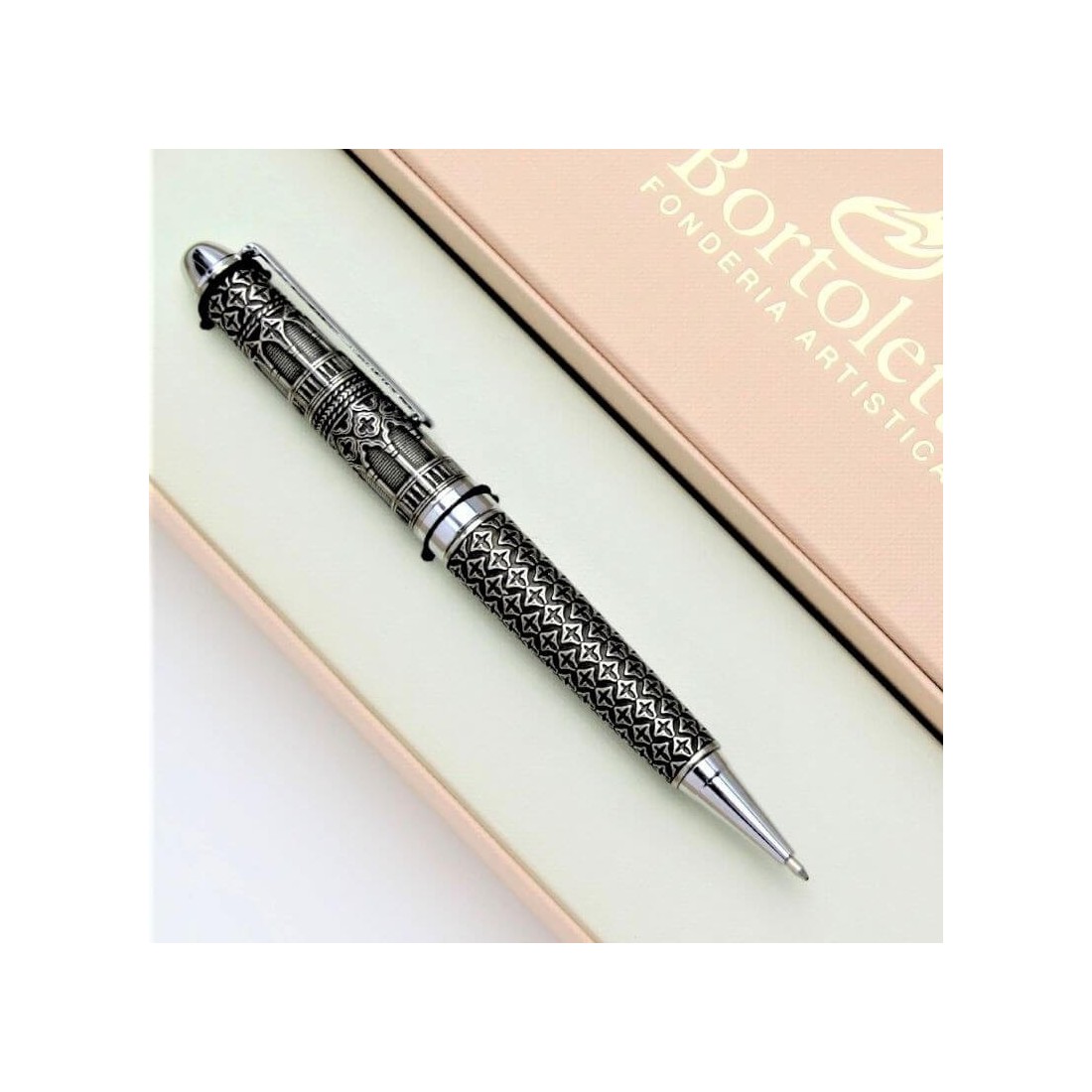 Weißbronzeguss und Dekoration treffen sich in einem einzigartig gestalteten Stift. Es passt perfekt zu einem Stifthalter. Und es ist ein weiteres Flaggschiff von Bortoletti.