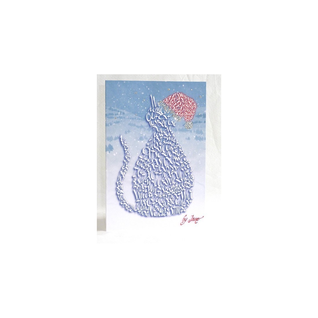 Entworfen unter Verwendung Kalligraphie in Wörter, Sätze und Zitate alles über unsere fabelhafte pelzigen Katzen Freunde. Dieser wunderschöne, handgefertigte, Karte hat Silberglitter zu schreiben "Christmas Fun" in den Hut. Glitzer ist auch in den Schneeflocken der Karte.