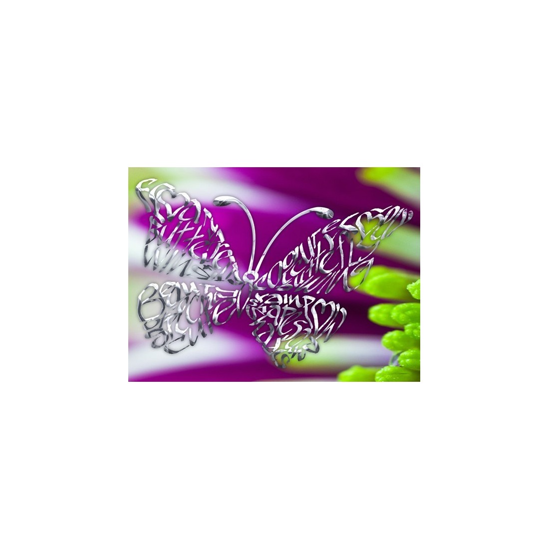 A beautiful chrome effect butterfly designed in words approaching a purple flower. This wonderful butterfly design reflects the delicate beauty of our summer garden winged friends. Unique, original and very different from our usual cards.