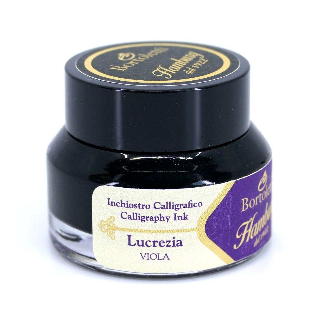 A bottle of purple Italian calligraphy ink (30ml), supplied by Bortoletti. One of the most controversial figures of the Italian Renaissance, sometimes victim, sometimes executioner, ready to betray for interest: Lucrezia Borgia...intriguing and passionate like the purple inspired by her.