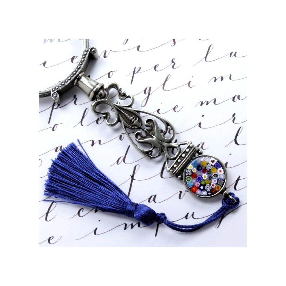 To arrive at the finished pendant there is an endless amount of processing, first the rod is created with the various designs, then it is cut into small pieces and composed a design with different murrines and remelted in the kiln, finally ground and polished to be mounted on the various objects.