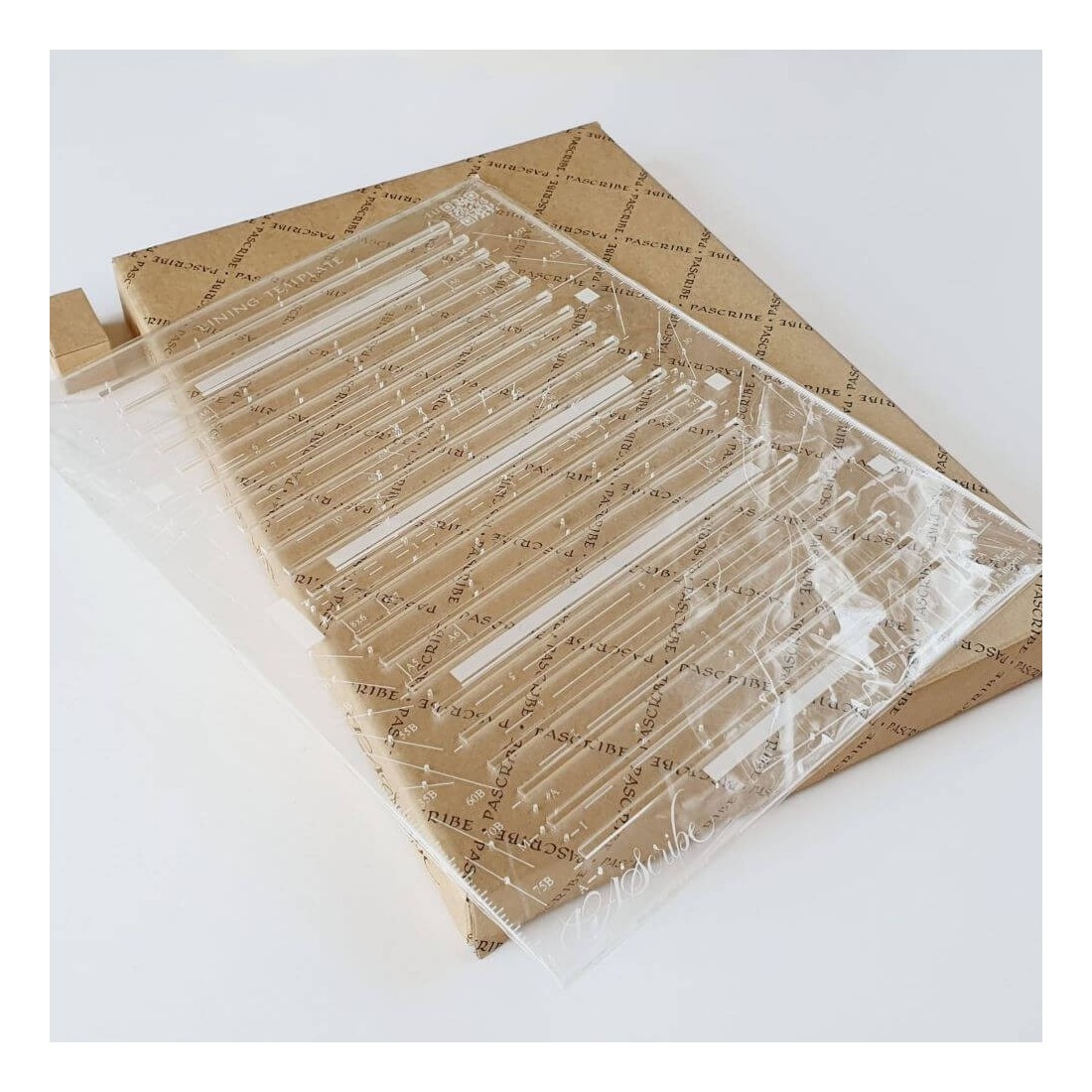 La plantilla está bellamente envasada en una caja de presentación con PAScribe Branding, lo que facilita la almacenamiento de manera segura cuando no esté en uso e ideal para transportar entre estudio, taller o aula.