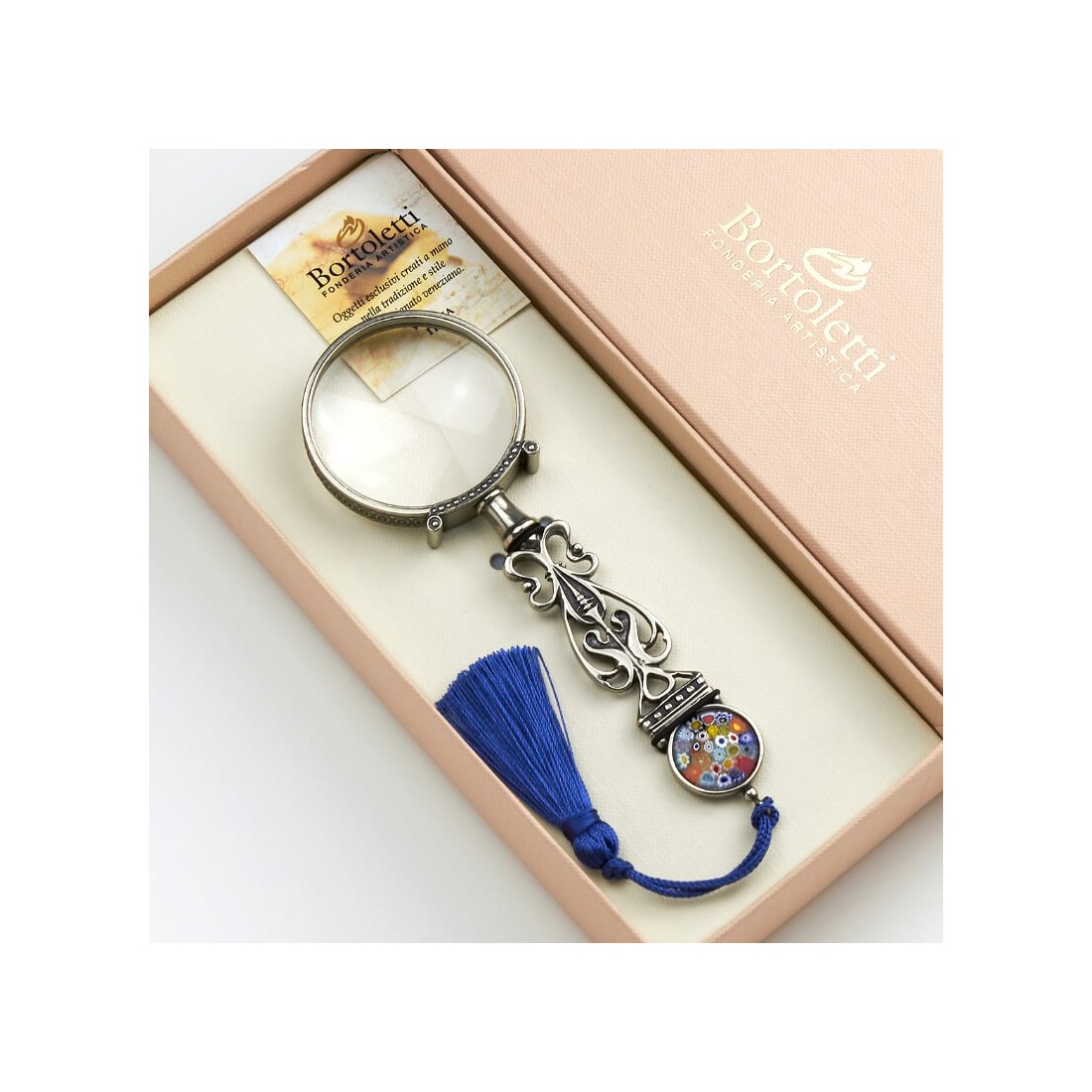 La pasión y el cuidado que dedican a sus productos son una fuente de orgullo y satisfacción para todos. Todas las creaciones son piezas únicas, hechas a mano y producidas elusivamente en Bortoletti'es taller. Al integrarse con hábitos modernos, ellos le restauran el placer de dar que nos ha pertenecido a todos durante milenios. El diseño de Bortoletti's productos es tan agradable al ojo porque habla del pasado en el lenguaje del presente.