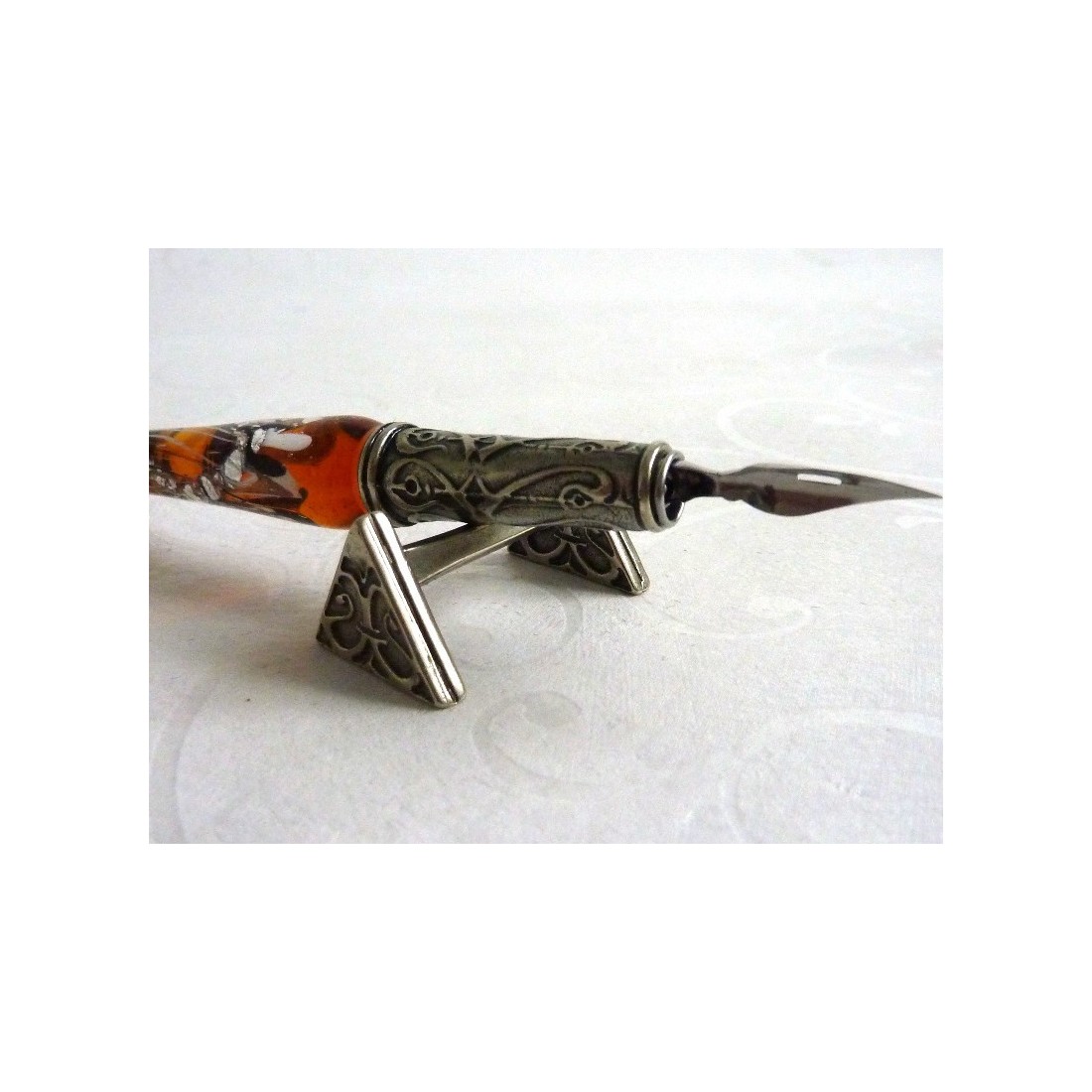Una cama cómoda para su amada pluma, hecha en plata níquel finamente trabajado. Una pequeña perla del diseño y la artesanía, esta pluma resto es único.