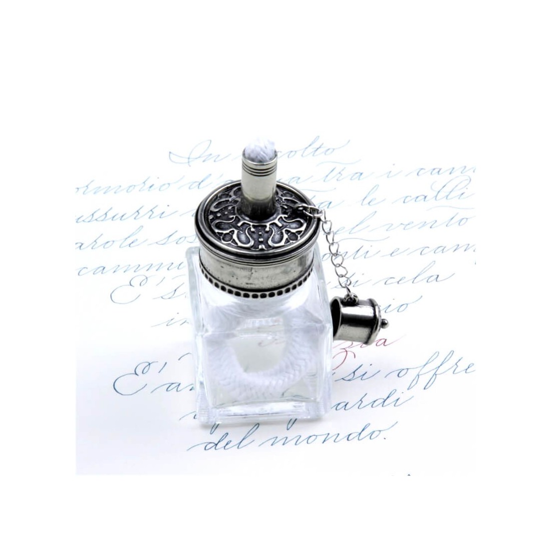 Gracias por preguntar. Bortoletti recomienda usar el 90% de alcohol puro o alcohol desnaturalizado (espíritus metilado) para una llama estable e inodoro que no quema ni decolora la cera.