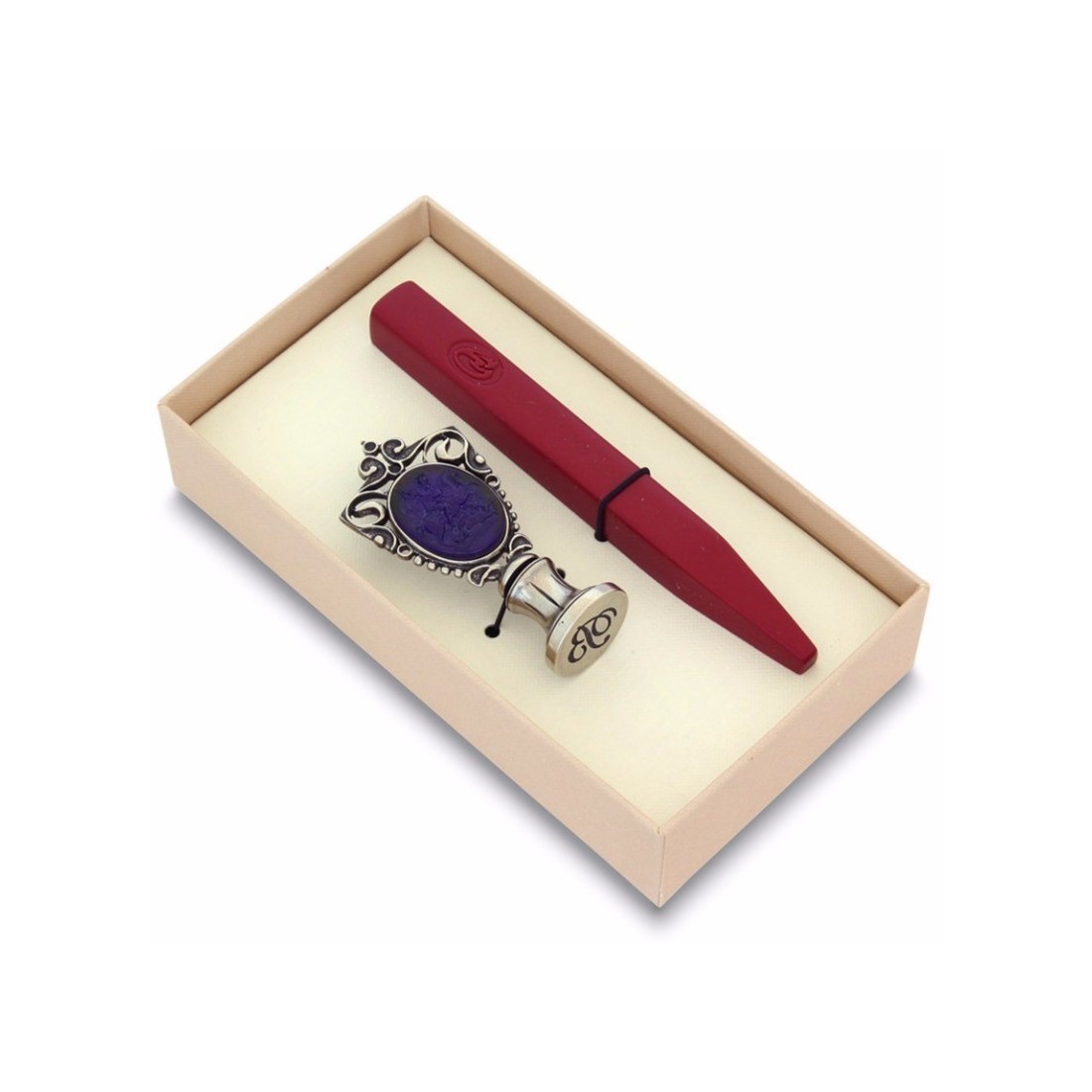 La Bortoletti El sello de cera de San Jorge es un sello de bronce finamente elaborado adornado con un camafeo de cristal de Murano que representa a Saint George. Hecho a mano en Italia y terminó con un friso de bronce chapado en plata de níquel, este elegante sello veneciano trae simbolismo, arte y distinción a cartas, invitaciones y correspondencia de lujo.