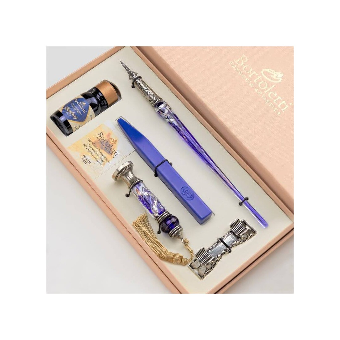 Bortoletti Leopardi Murano Pluma de cristal y set de sellos