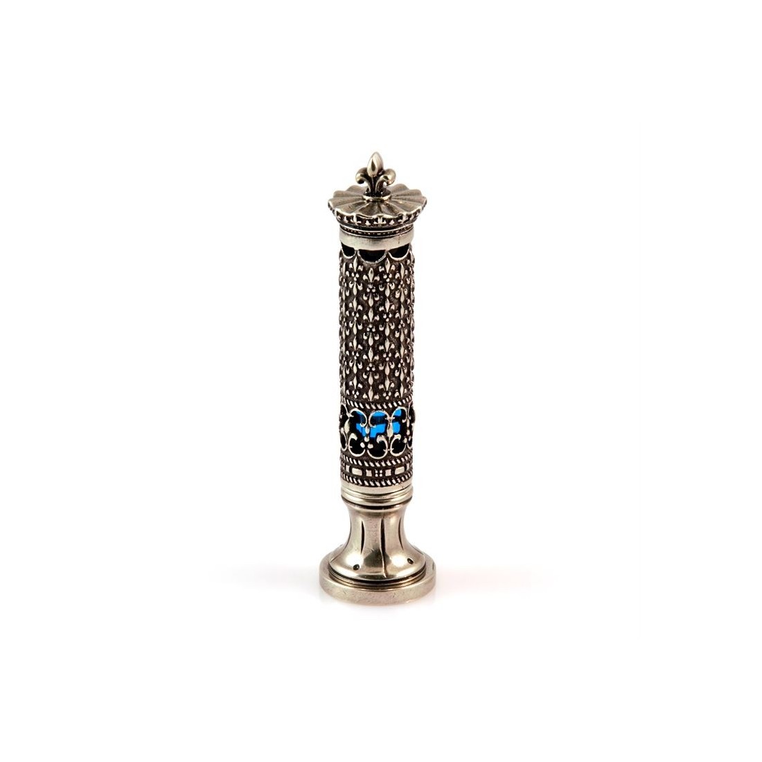 Sello de sello de cera de Corona - Bronce plateado de níquel-plata y vidrio azul
