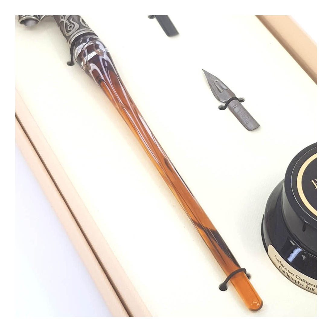 Bolígrafo oblicuo de caligrafía - vidrio hoja de plata