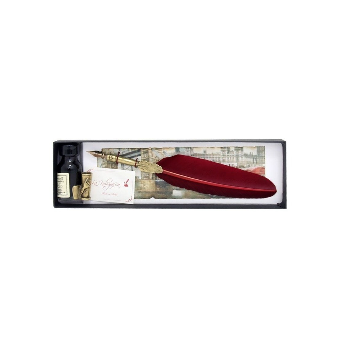 Esta pluma está terminada con un distintivo diseño de pluma en el eje de color latón e incluye una botella de tinta negra con un portalápices de color de latón a juego. El set viene empaquetado en una caja de regalo inspirada en Londres para crear un set de regalo moderno perfecto para los amantes de la caligrafía y el arte. Fabricado en Italia.