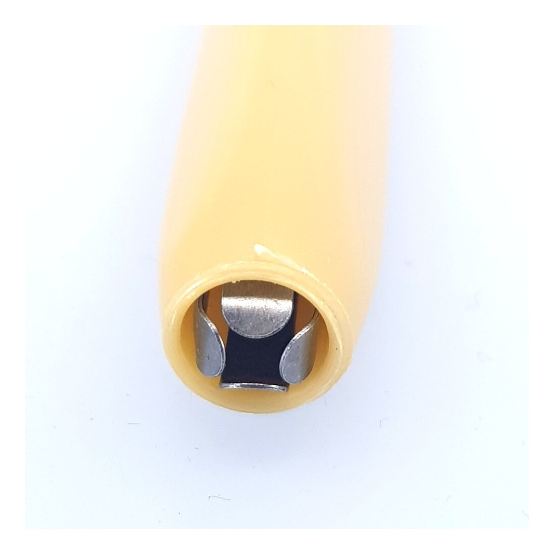 Hecho de plástico rígido, su punta simplemente empuja hacia el final del soporte.
