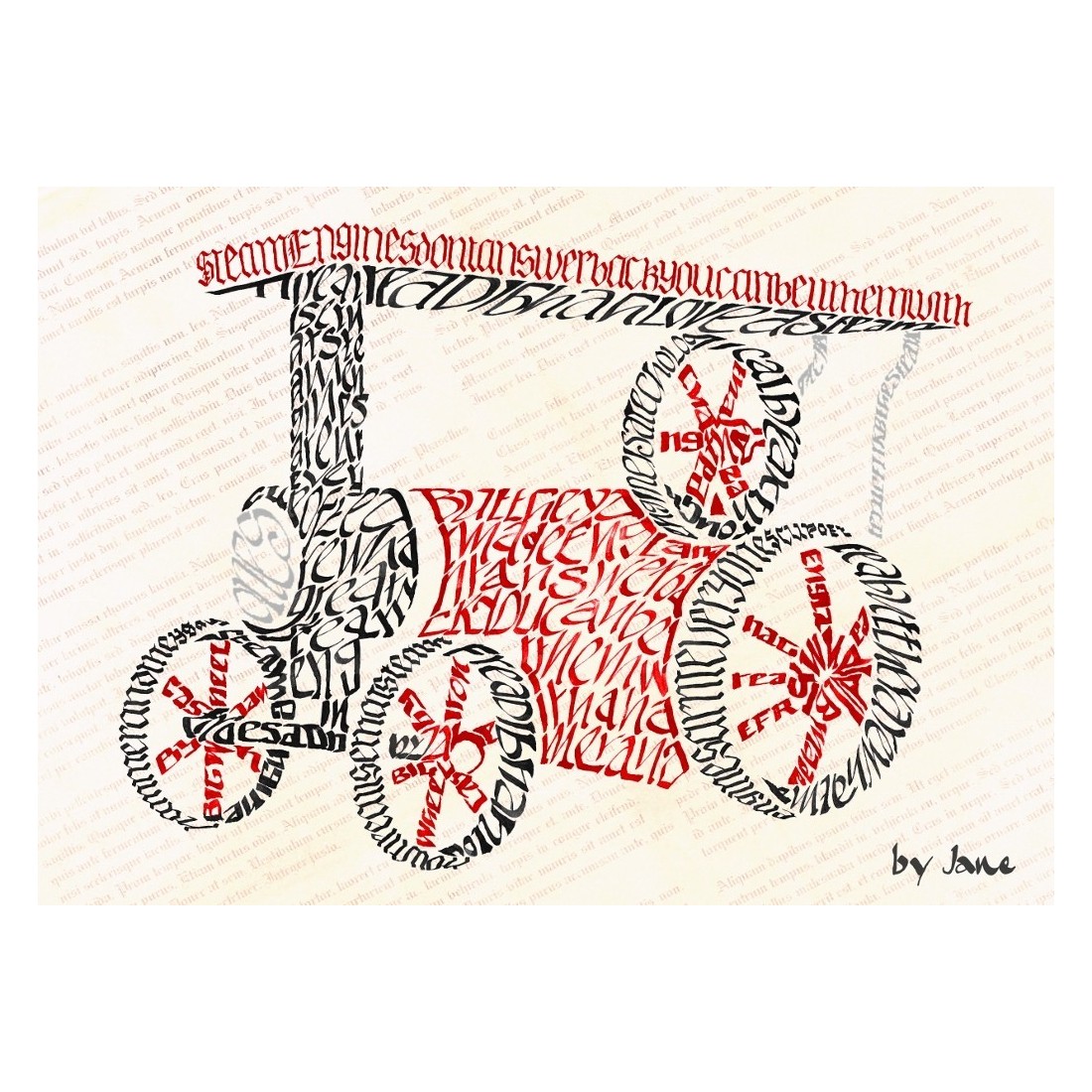 Vetomoottori. Fred Dibnah rakasti heitä. Kuvittele, kuinka savu ja höyry vuotavat moottorista, kun se mölii tien varrella. Suunnittelema Jane ja saatavana kahta kokoa.
