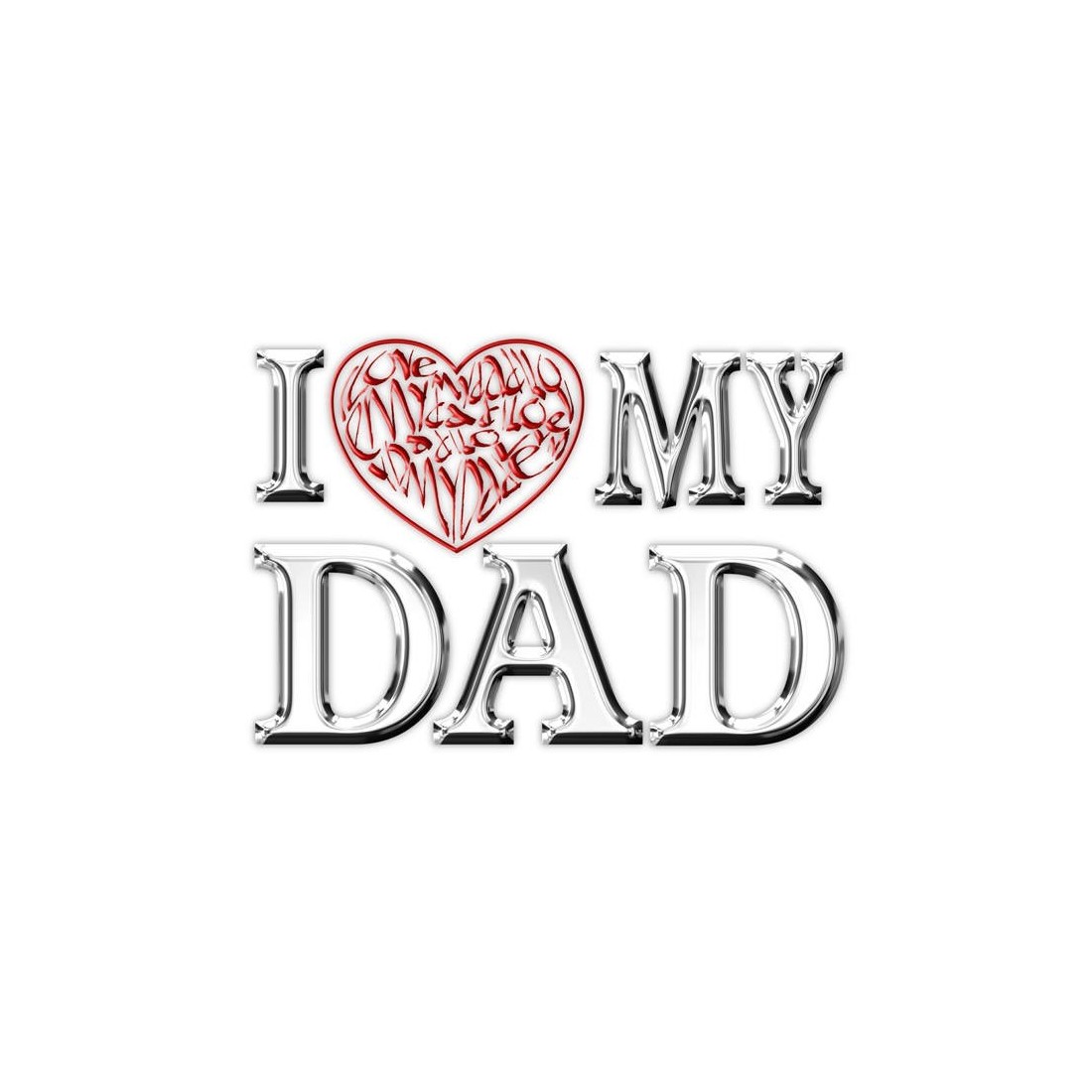 Upea isänpäiväkortti, jossa on kromi-efektikirjaimet ympäröivän punaista sydäntä ja joka on kirjoitettu kaunokirjoituksella "I Love my Dad". Korttia on kahta kokoa ja se on tyhjä sisäpuolelta omaa henkilökohtaista viestiä varten.