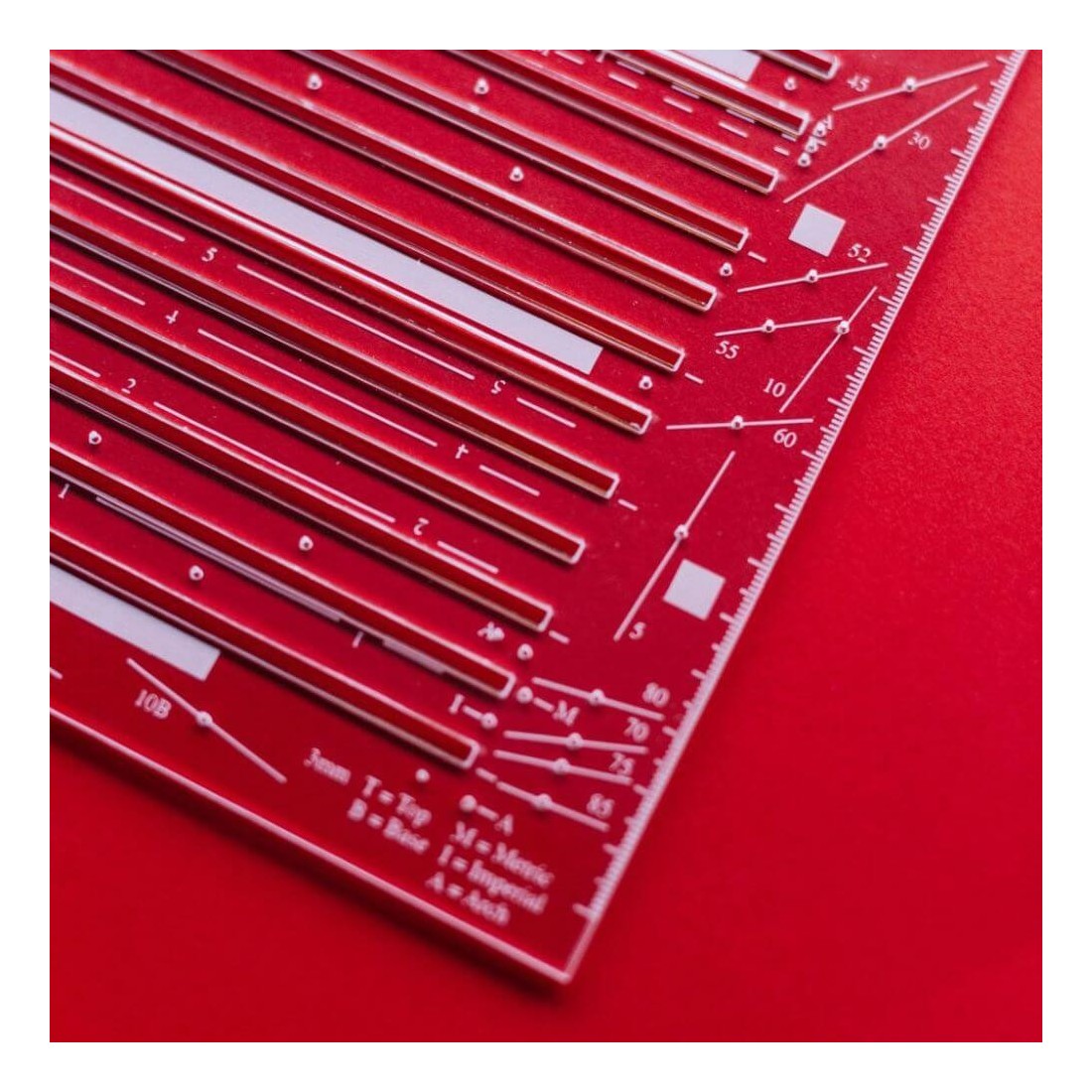 Valmistettu Clear 3 mm Perspexistä, malli istuu tasaiseksi ja stabiililla tyynyillä tai tyhjillä arkkeilla, joiden avulla voit hallita vaakasuoraa ja aksiaalisia viivoja luottavaisesti ja toistettavissa tarkkuudella. Sen avoimuus pitää ulkoasun näkyvissä aina, mikä tekee tarkalle paikannus yksinkertaisiksi ja intuitiivisiksi.
