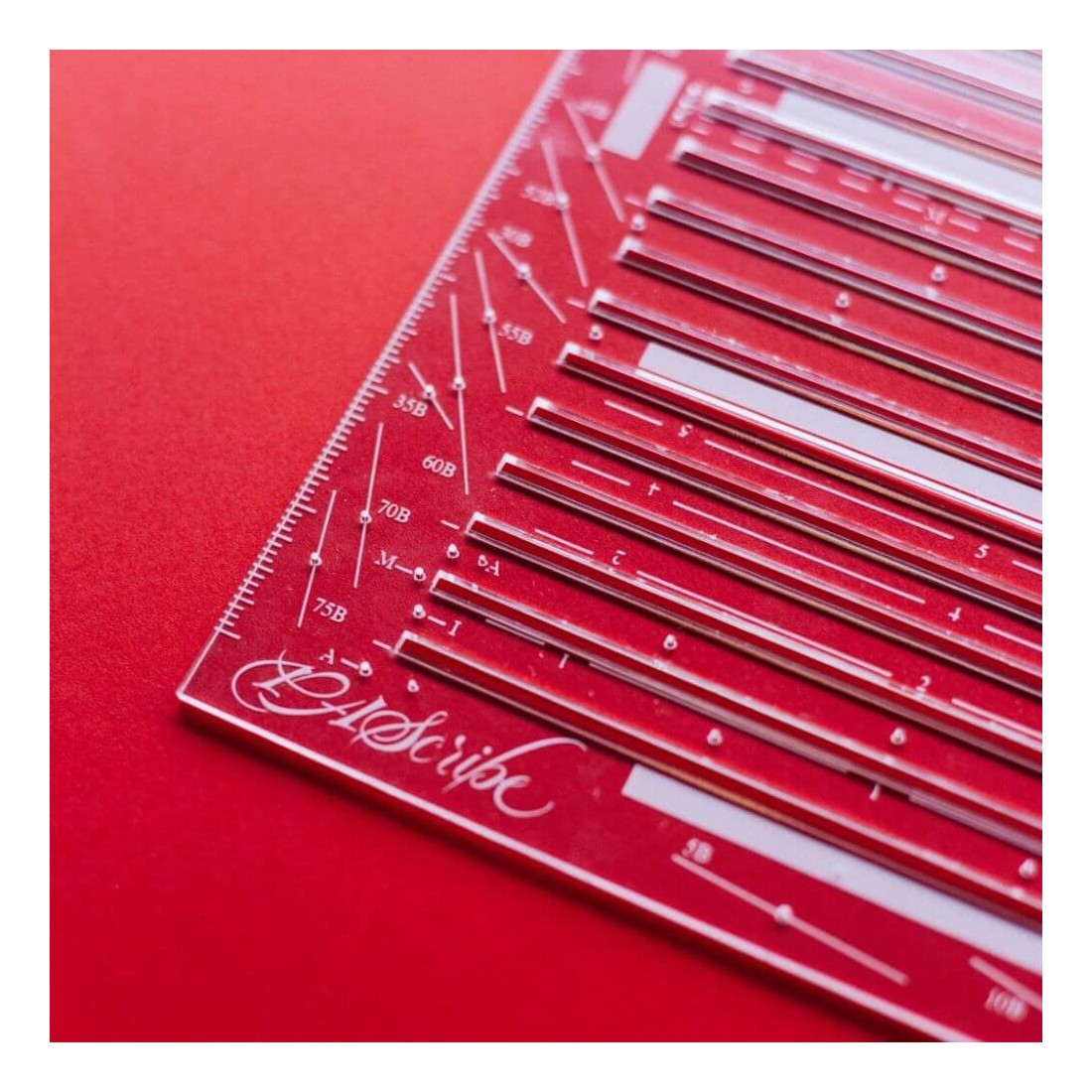 Tarkkuus A4 vuorausmalli PAScribe, jonka suunnitteli Master Calligrapher Paul Antonio. Valmistettu Clear 3 mm Perspexistä, se istuu tasaiseksi ja stabiililla tyynyillä tai löysällä arkkeilla, mikä helpottaa tarkkoja vaakasuorellisia ja aksiaalisia linjoja, joilla on johdonmukaisuus ja luottamus.