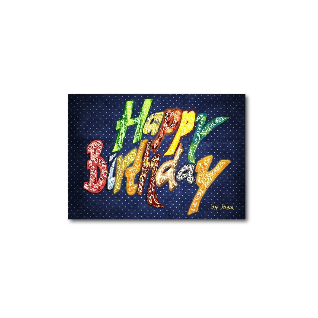 Hyvää syntymäpäivää!Tummempi versio ihana, erittäin värillinen syntymäpäivä kortti. Monivärinen kalligrafiaa merkkiä saatetaan tummansinisellä pohjalla.