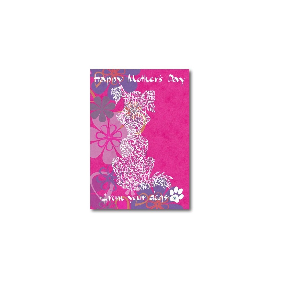 Plus d'un chien? Alors essayez cette carte. Bonne fête des mères de la part de vos chiens. Une jolie carte faite à la main avec un chien conçue à l'aide de la calligraphie dans des mots, des phrases et des citations sur le meilleur ami de l'homme. Trois horizons merveilleusement différents à choisir.