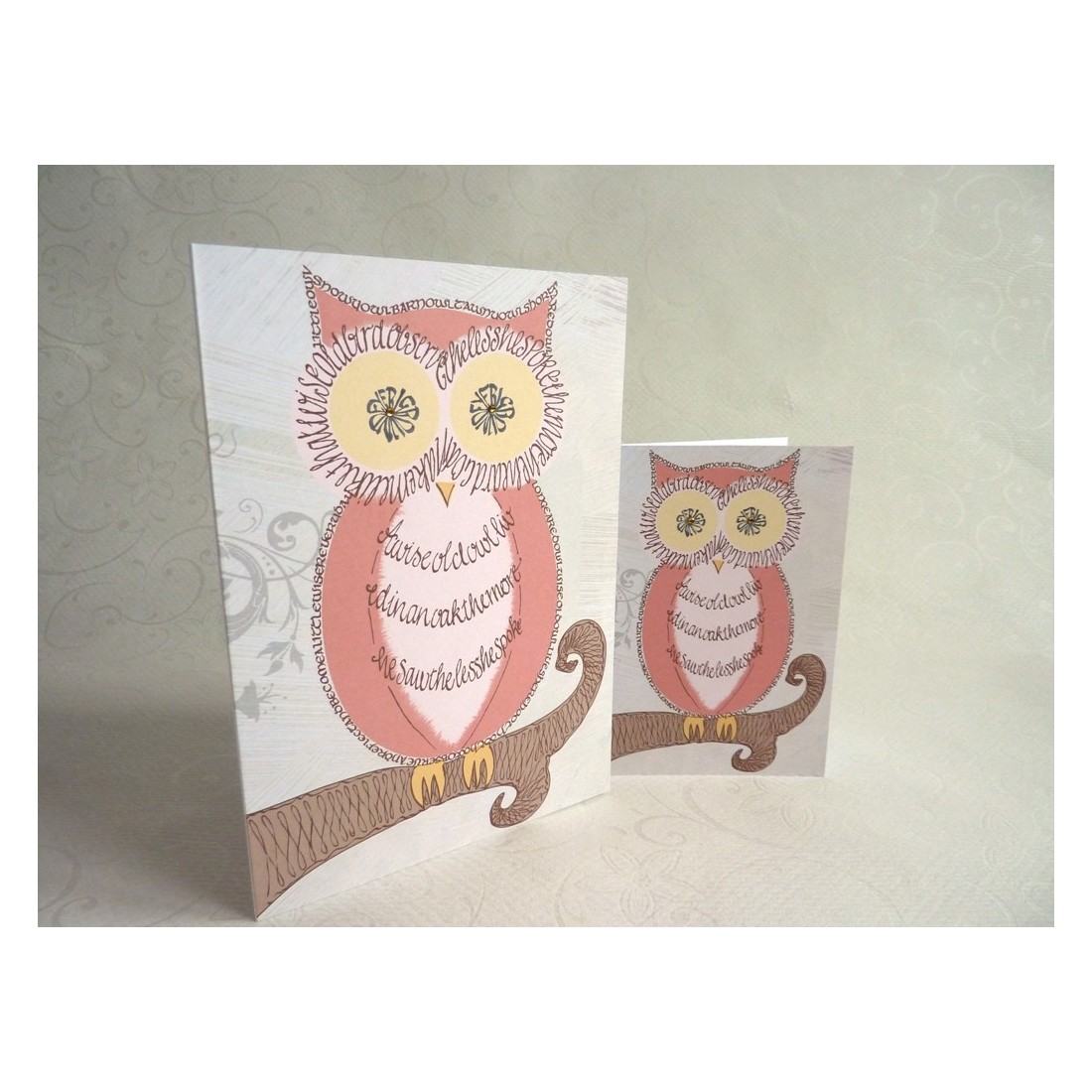 Un hibou sage, calligraphique carte de voeux. Une carte merveilleusement style conçu dans la calligraphie avec des couleurs vintage dépeignant un vieux hibou sage assis sur la branche d'un arbre. Diamants sont placés sur la carte pour faire yeux pétillent son.