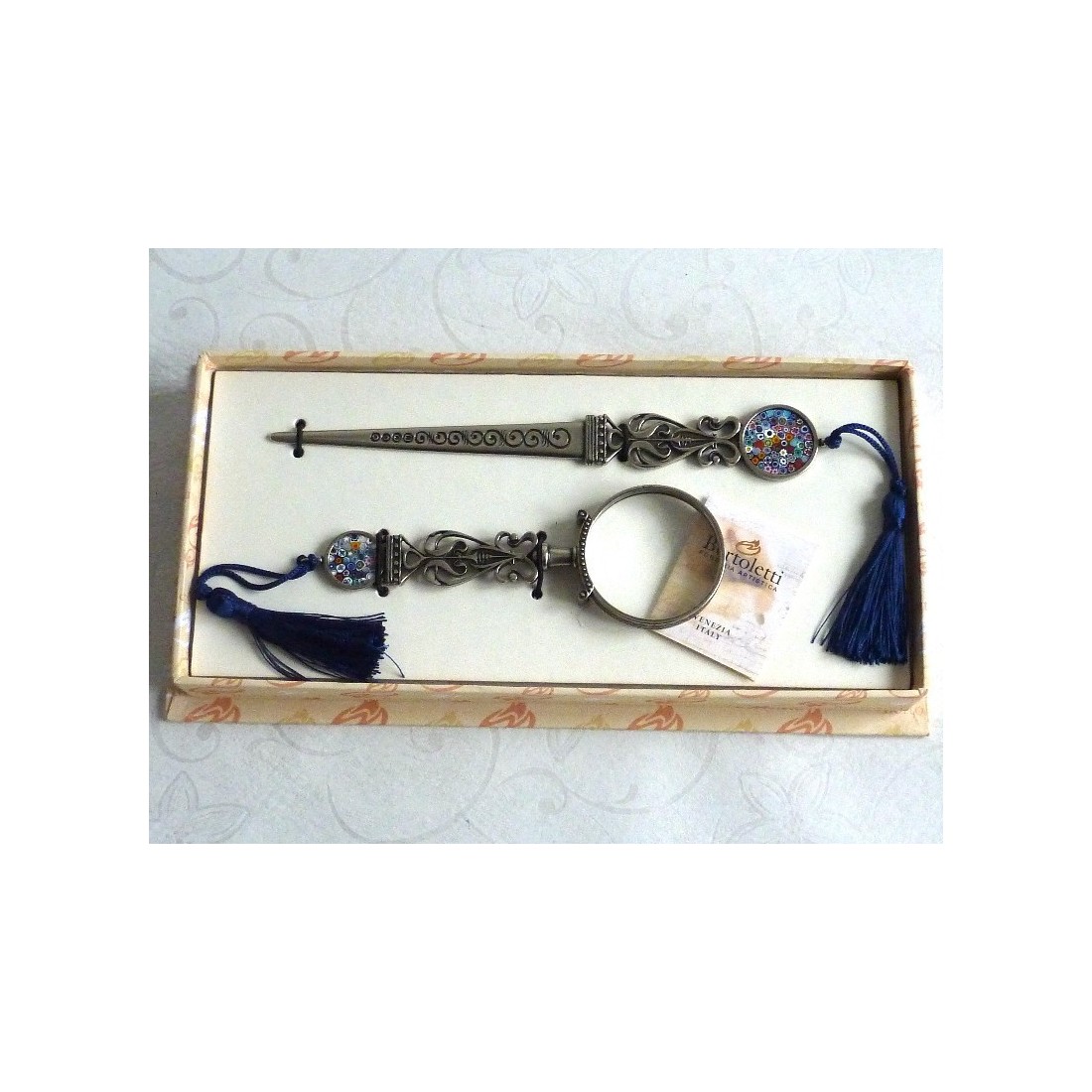Coupe-papier et loupe, des objets utiles et des éléments décoratifs seront fière allure sur votre bureau. Ils sont en argent nickel très colorés perles de verre Murrina. Pour ceux qui aiment le style de l'élégance vénitienne. Fabriqué en Italie par Bortoletti Fonderia Artistica.