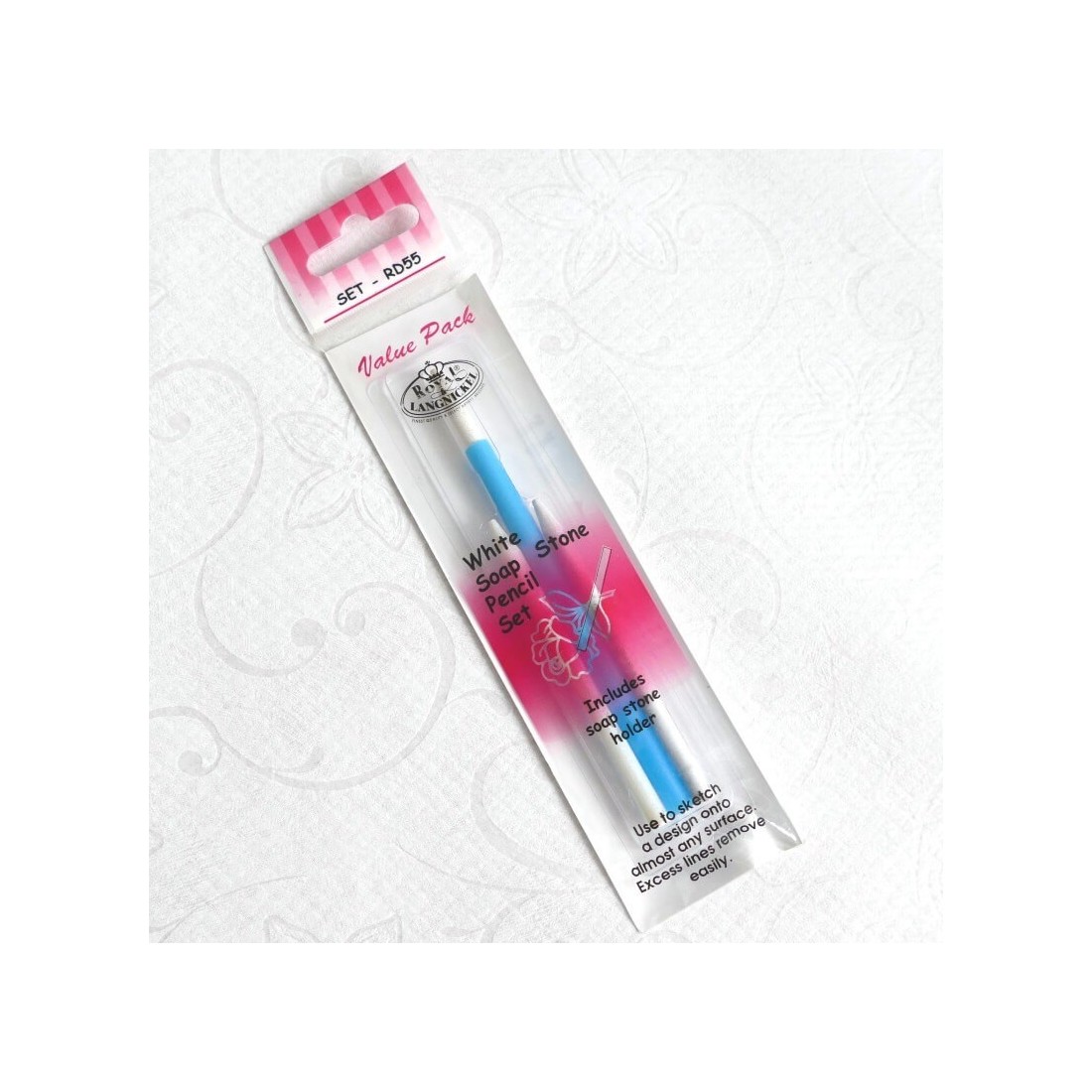 Ensemble de crayons en pierre à savon blanc. Paquet de valeur qui contient trois crayons et un porte-savon. Utilisez pour esquisser un dessin sur presque n'importe quelle surface. Les lignes excédentaires sont supprimées très facilement. Idéal pour les artisans et calligraphes qui souhaitent concevoir sur du papier foncé.