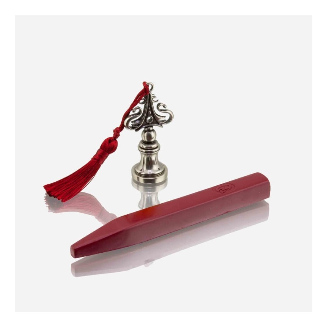 Le sceau de la cire de Landi par Bortoletti est un joint de bronze plaqué nickelé raffiné avec des initiales et des symboles interchangeables. Fait à la main à Venise et fini avec un gland coloré, ce design élégant peut également être porté comme un pendentif - parfait pour la papeterie personnalisée, les invitations de mariage et l'emballage de cadeaux de luxe.