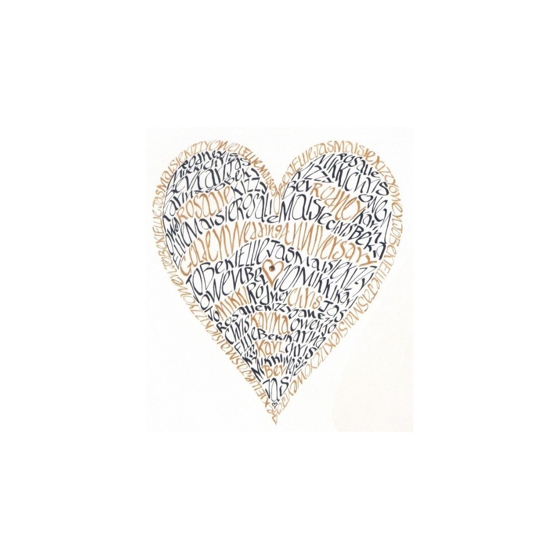 Una fantastica opportunità per avere uno straordinario design del cuore su misura creato appositamente per te. Si chiama "Il cuore della mia famiglia" per una buona ragione: questo meraviglioso pezzo ha i tuoi nomi di famiglia scritti attraverso di esso nello stile calligrafico di Jane. Al centro del cuore di questo splendido design c'è un diamante rosso.