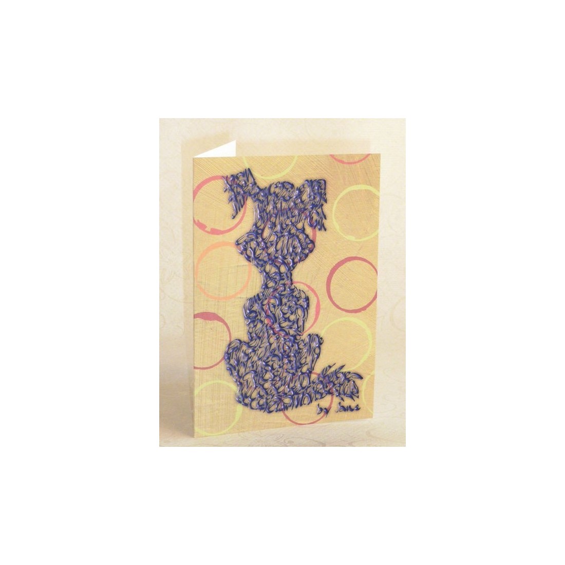 Ottimo per inviare una nota o grazie ad un amico o amato. Una carta artigianale unica con un cane progettato utilizzando calligrafia in parole, frasi e citazioni tutto su migliore amico dell'uomo. Questa splendida carta fatta a mano ha diamanti collocati entrambi i lati del testo nella parte inferiore della carta. Posizionato su uno sfondo circolare verde.
