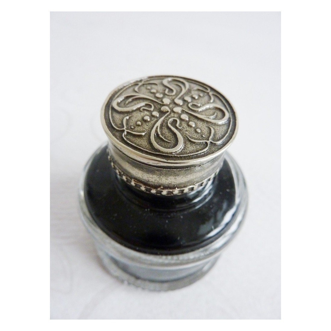 Un elegante calamaio in vetro con tappo in alpacca. Concepito da maestri gioiellieri di Bortoletti, questo splendido calamaio farà una bella aggiunta alla vostra scrivania o set di calligrafia.