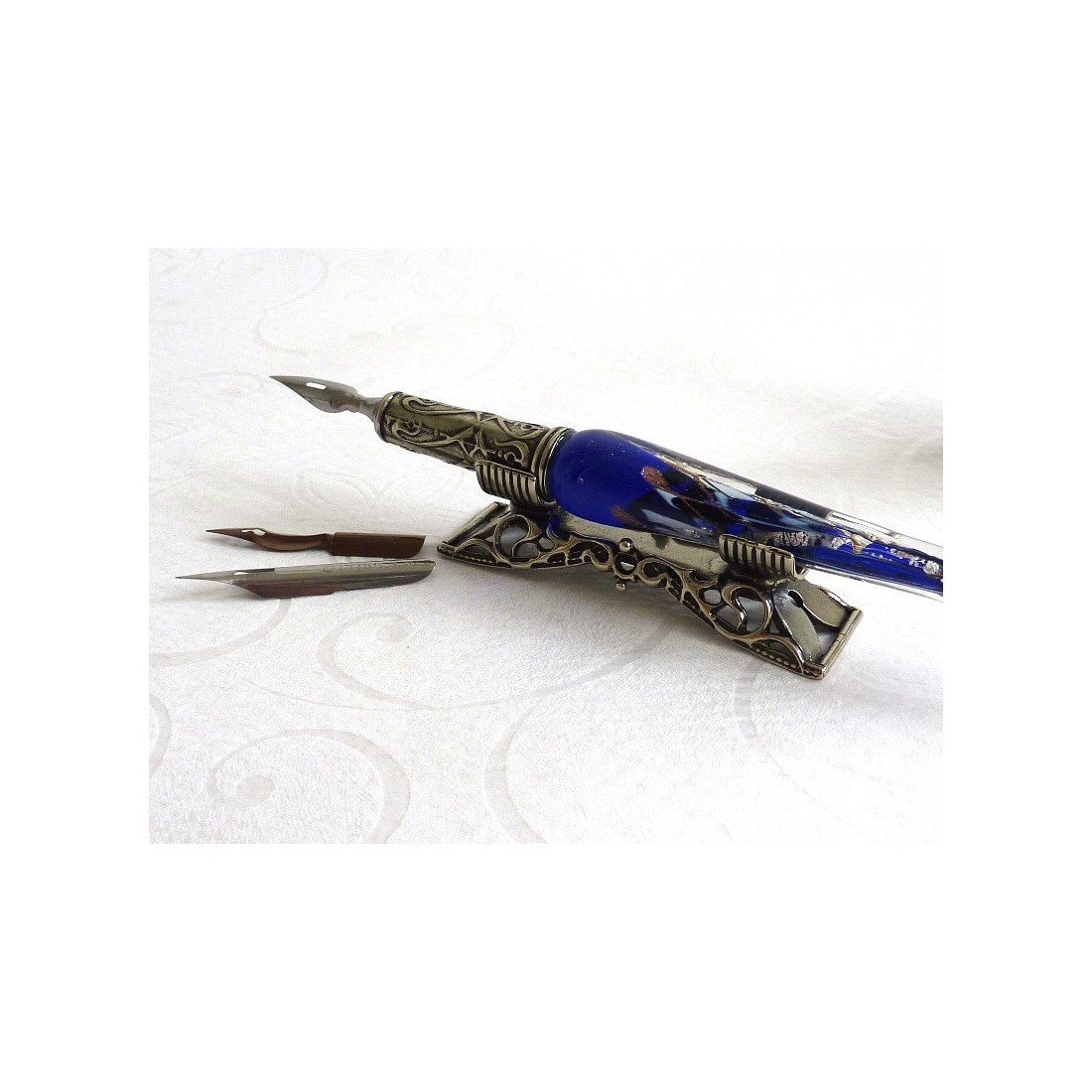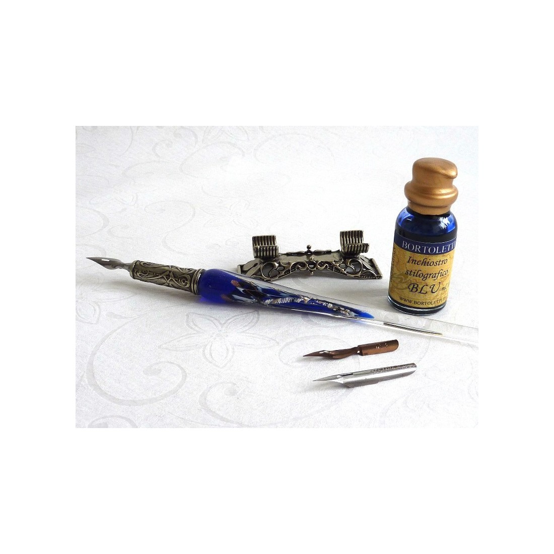 Silver Leaf Glass Calligraphy Set penna di immersione & Pen Rest