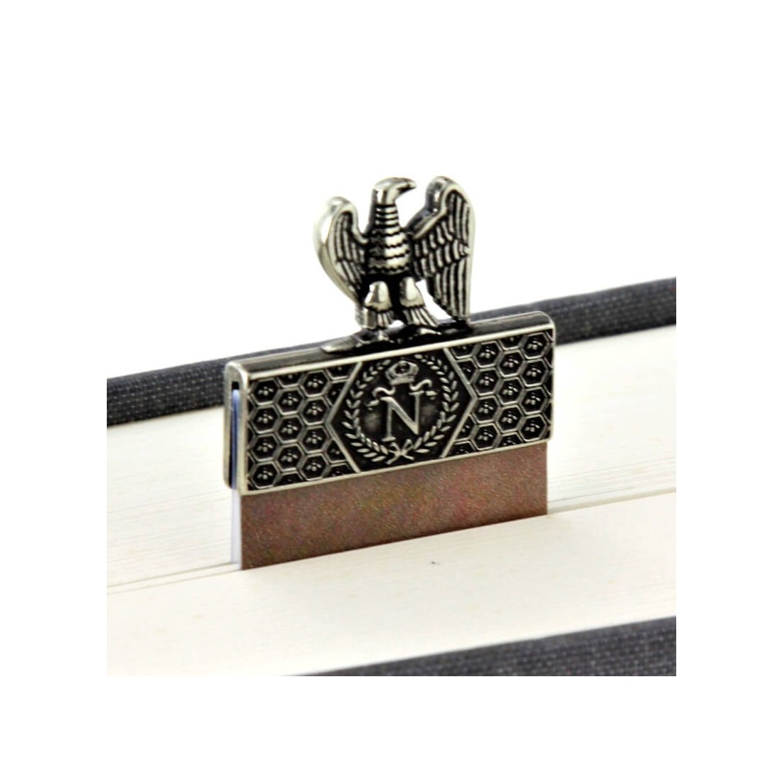 Originale segnalibro con fregio raffigurante lo stemma napoleonico inciso con le api, simbolo di immortalità. Le api furono scoperte nel 1653 a Tournai nella tomba di Childerico I, fondatore nel 457 della dinastia merovingia.
