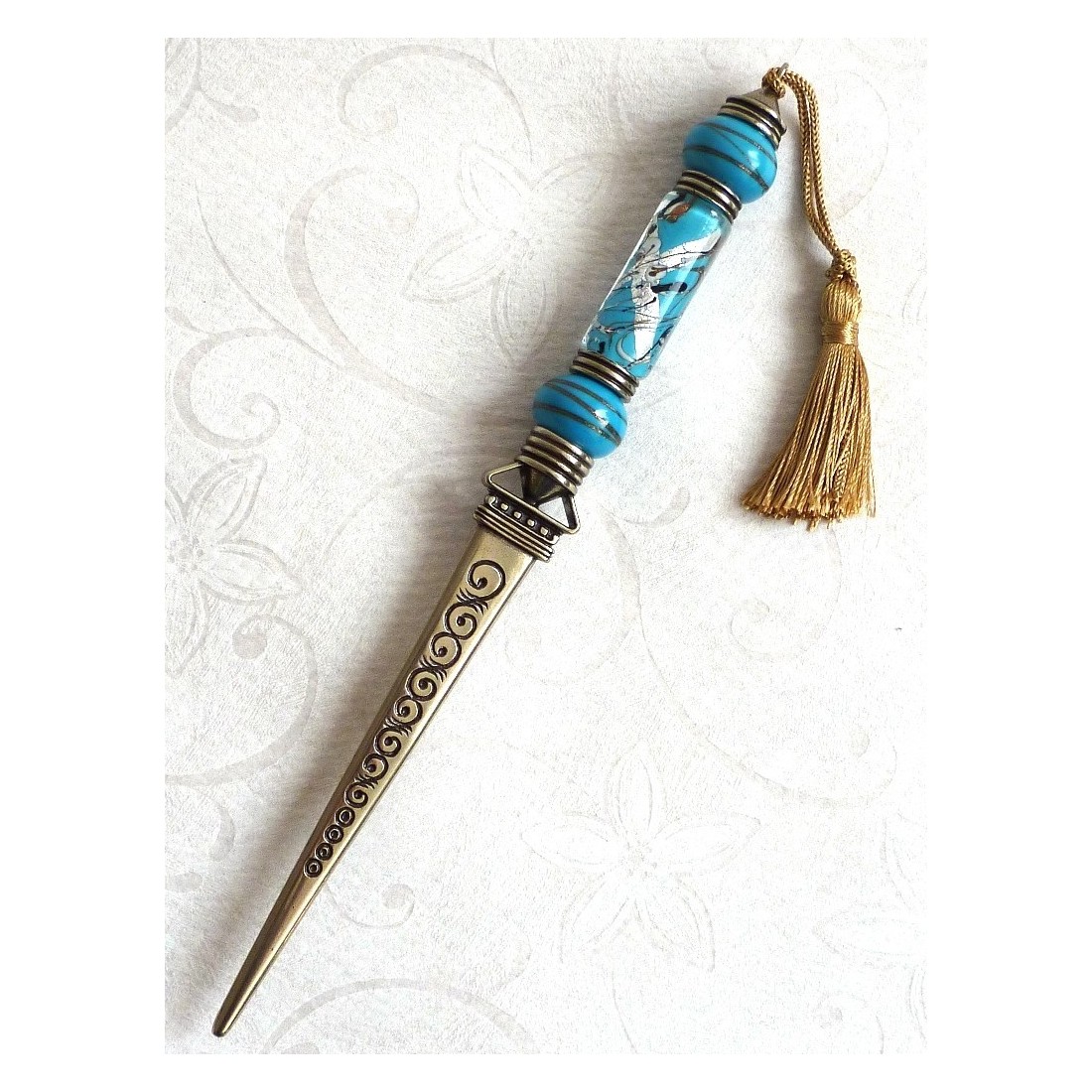 Coupe-papier tout-à-fait conforme à la description, un très bel objet artisanal et unique.