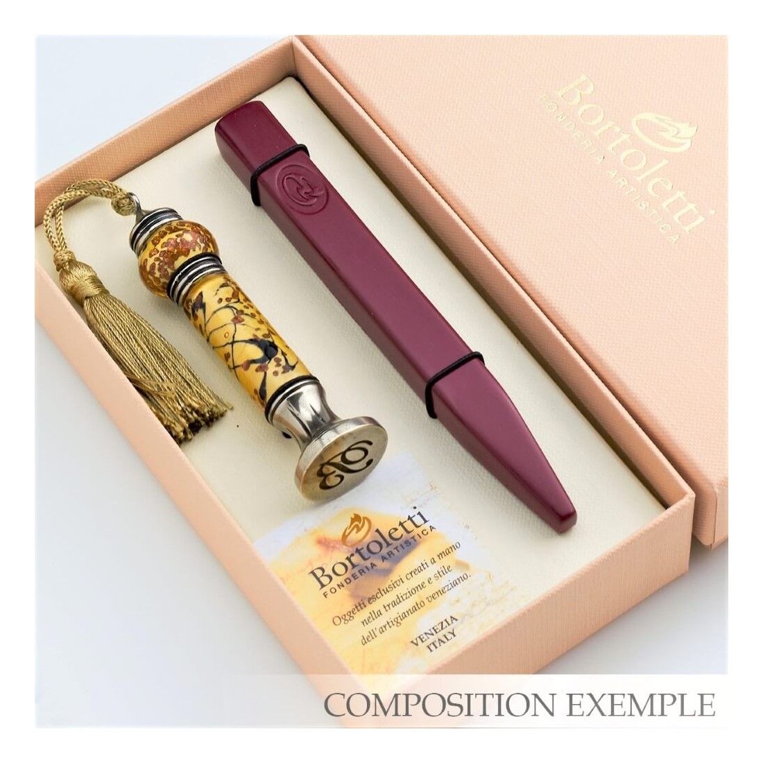 De SIG009 TEODATO WAX SEAL is een verfijnde uitdrukking van Venetiaanse kunstenaarschap, handgemaakt in Italië door de Master Glassmakers van Bortoletti.