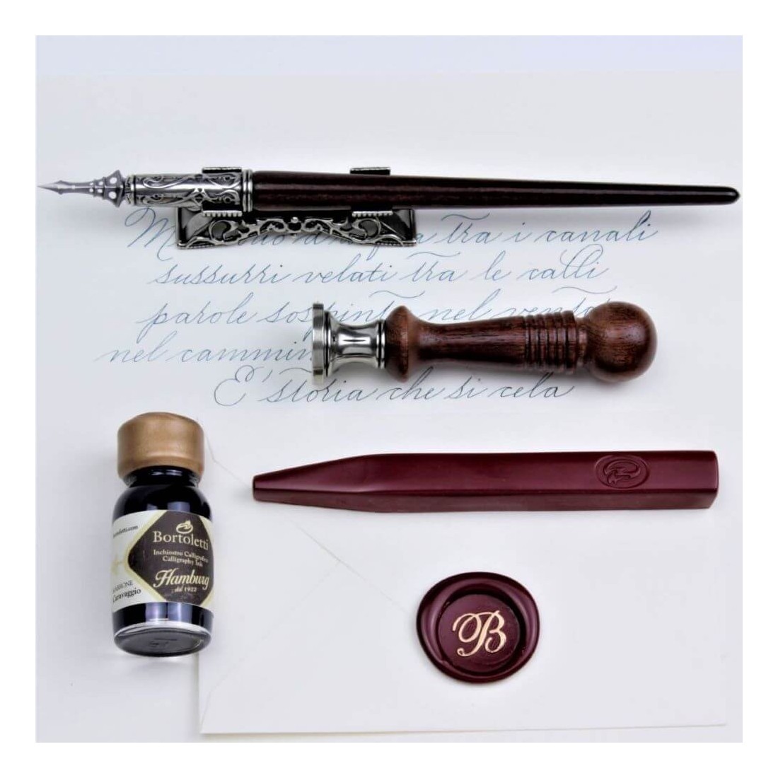 Bortoletti CIMAROLI PEN EN SEAL SET - Houten Calligraphy & Wax Seal Collection