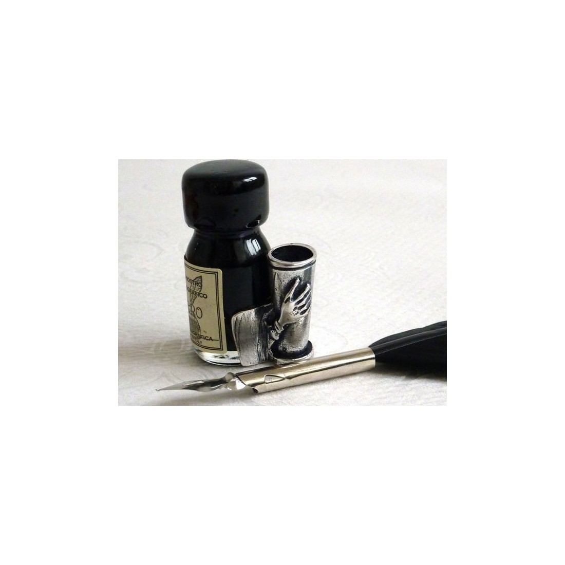 Deze prachtige kalligrafiepen en inktset met ganzenveren is een ideaal cadeau voor diegenen die geen grotere pennen willen. Het wordt compleet geleverd met een fles zwarte inkt met daarin een tinnen ganzenveerhouder. Gemaakt in Italië door La Kaligrafica.