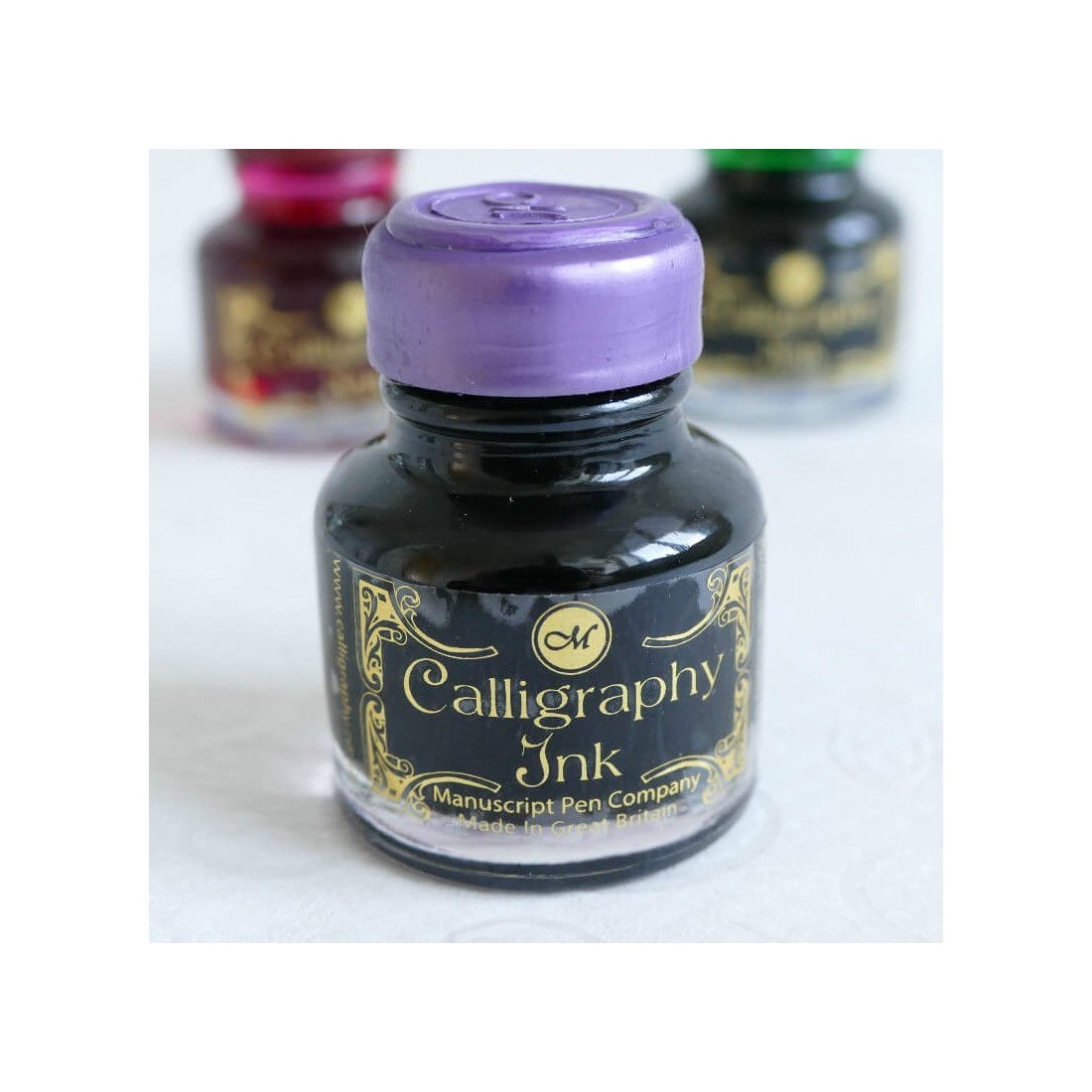 Paarse kalligrafie inkt. Een mooi cadeau fles met een lakzegel top. Bevat 30ml van paarse inkt. Geschikt voor gebruik met zowel de fontein en dip pennen.
