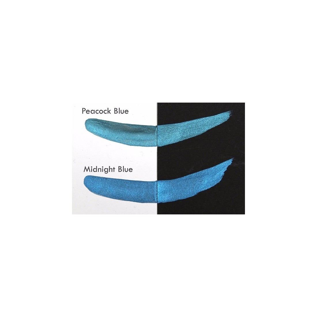 De Peacock Blue Pearlcolor, handgemaakt in Duitsland, geeft een levendige metalen glans. Verpakkingen met een etiket passen gemakkelijk in een metalen paletdoos.