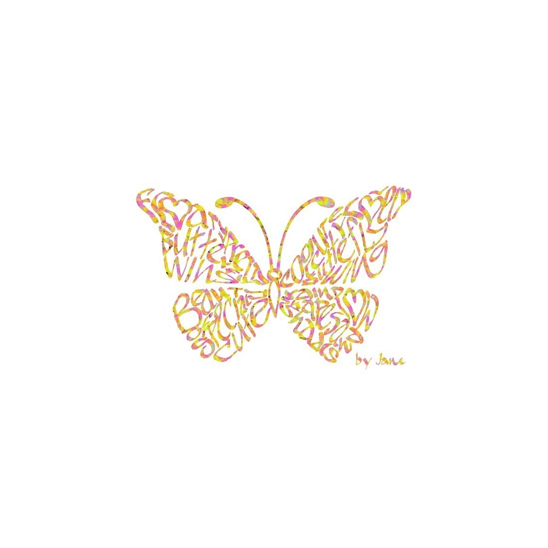 En ljus och härlig konfetti färgad fjäril, kalligrafiska gratulationskort. Mousserande diamantes belysa vingspetsarna och huvudet, medan kroppen och antennen har båda glitter tillämpas för att ta fram en särskild gnistan.