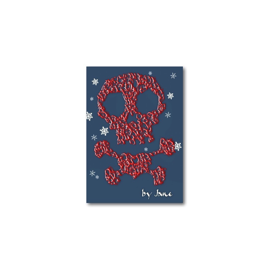 Vårt unika pirat-, skalle- och korsbenskort är redo för säsongens festligheter med en julröd 3D-effekt och snöflingor på en mörkblå bakgrund.
