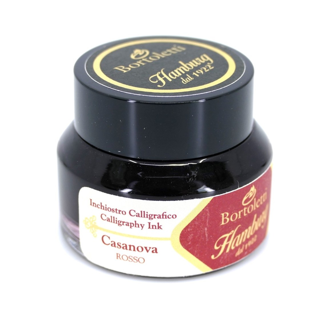 En flaska rött italienskt kalligrafi bläck av god kvalitet (30 ml). Levererad av Bortoletti. Kärlekens och sensualitetens färg tillägnad Giacomo Casanova. Ett bläck för att återuppleva atmosfären som den stora förföraren skapade på Venedigs gator. Hur kan man motstå det?
