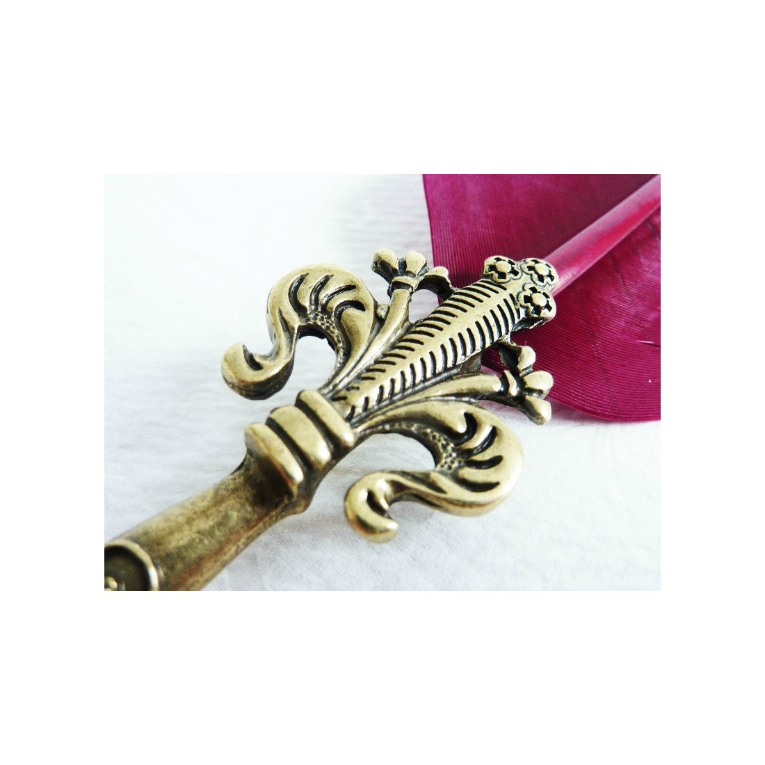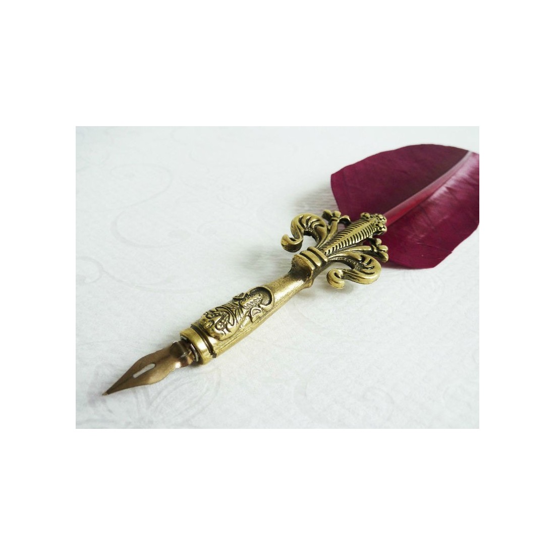 Fleur De Lys fjäder quill och bläck uppsättning - vinröd